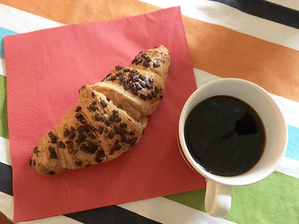 Och så blev det söndag och regnet smattrade mot rutan. Min kusin med familj kom över på morgonkaffe med chokladcroissant.