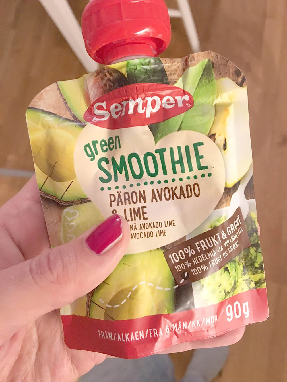 Jag hade köpt en smoothie till Älva som jag hade enorma förhoppningar på; hur gott låter det inte med avokado, päron och lime? Men hon fräste, Aramis testade och gjorde kräkljud och ja usch alltså. Den smakade besk och gammal avokado och nej tack.