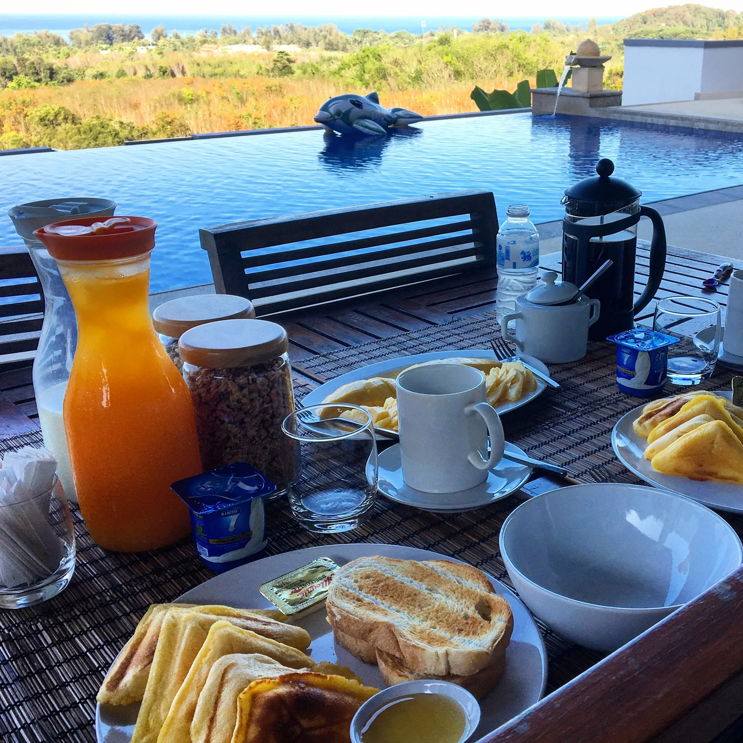 Imorse åkte Aramis, Micke och Pelle på fisketur medans jag och Carro var hemma med resten av barnen. Frukost dukades upp av personal strax efter 8 och den var helt gudomlig.