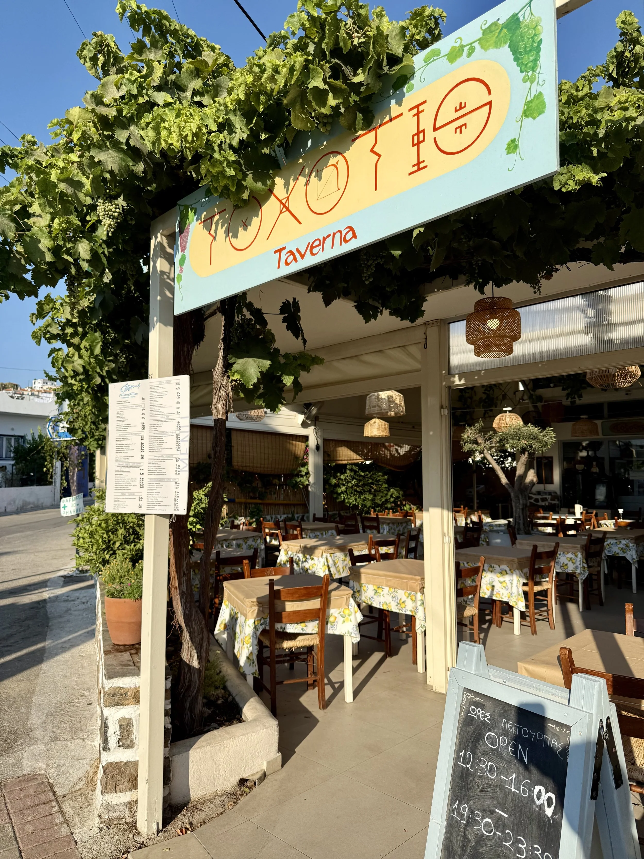 Ett underbart ställe en promenad från Skala, med magiskt utsikt. JÄttegod mat, personlig service och det här är också ett retreat för yogagrupper etc