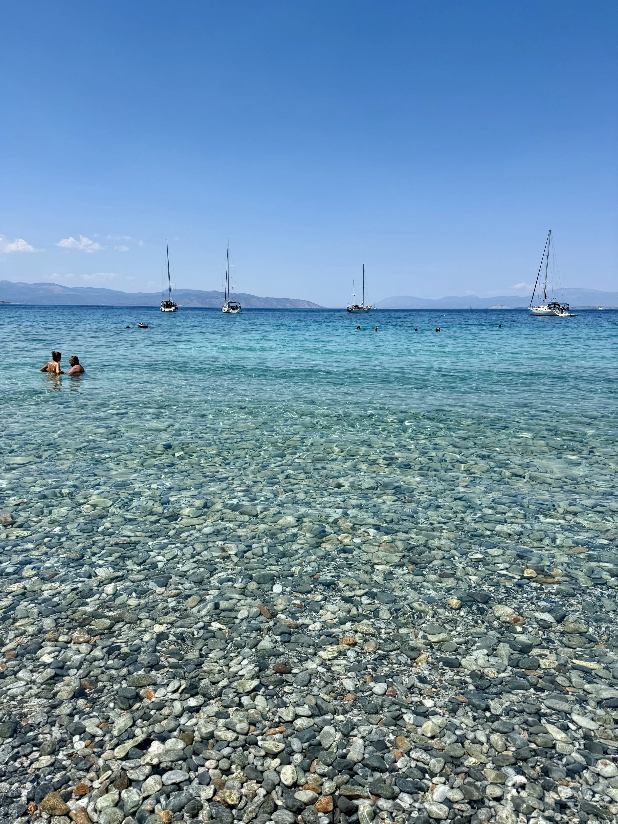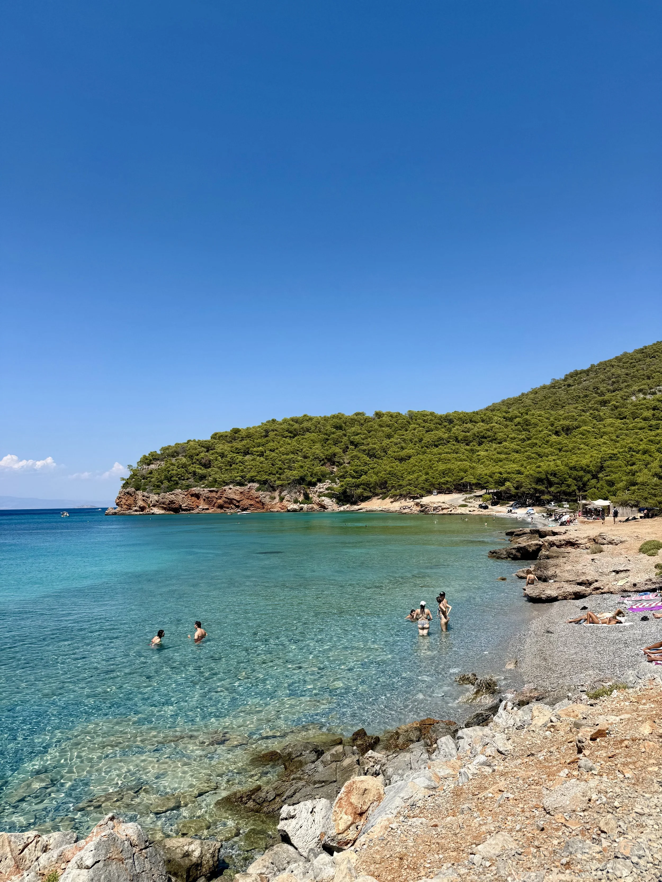 /Agistri ligger bara en timme från Aten och har något av de klaraste vattnet jag sett i hela Grekland. Vi åkte till Agistri från Egina, en resa som endast tog 10 minuter med snabbfärjan som kostade €8. Innan var på Poros också som var en otroligt mysig ö.
