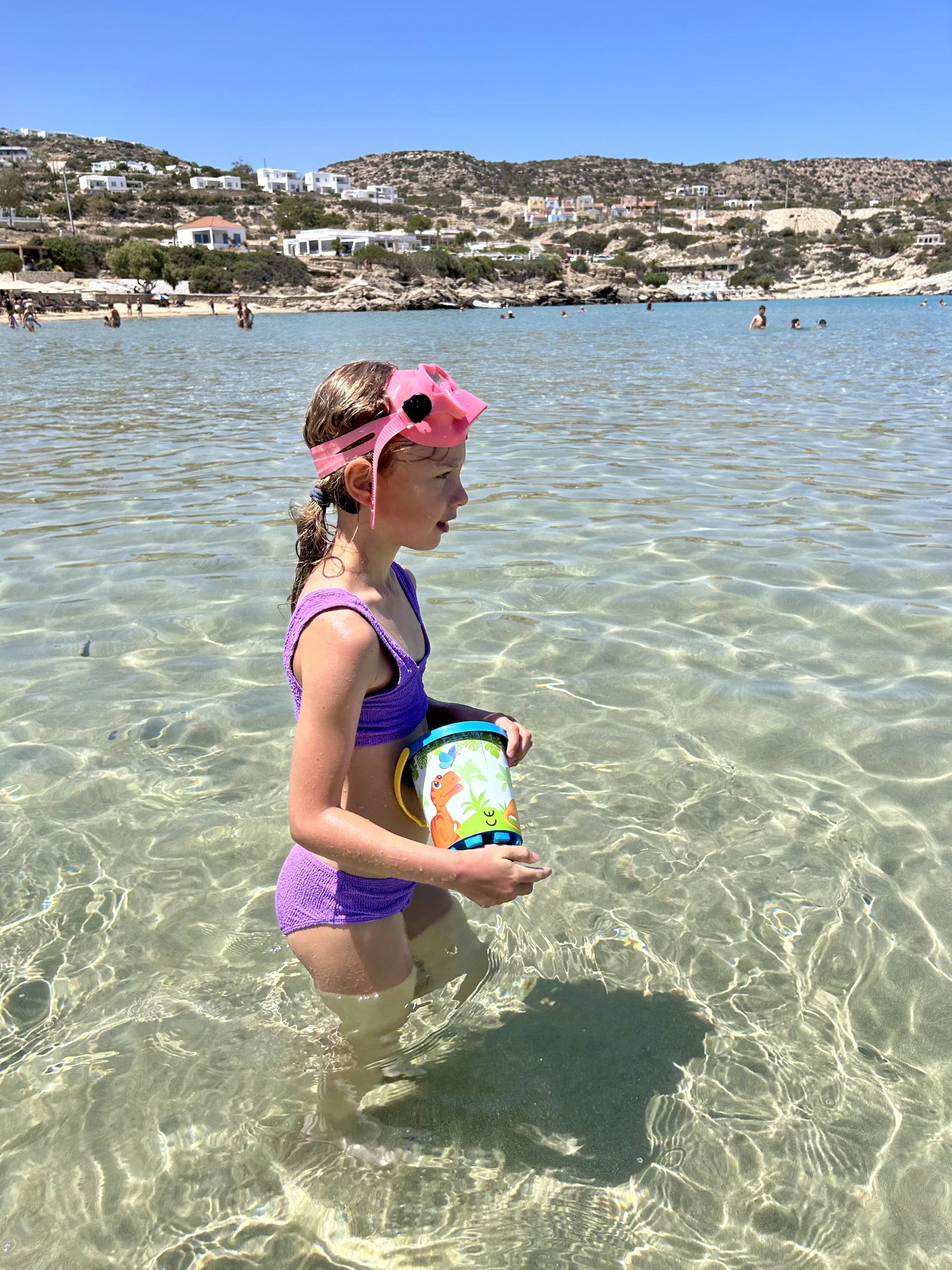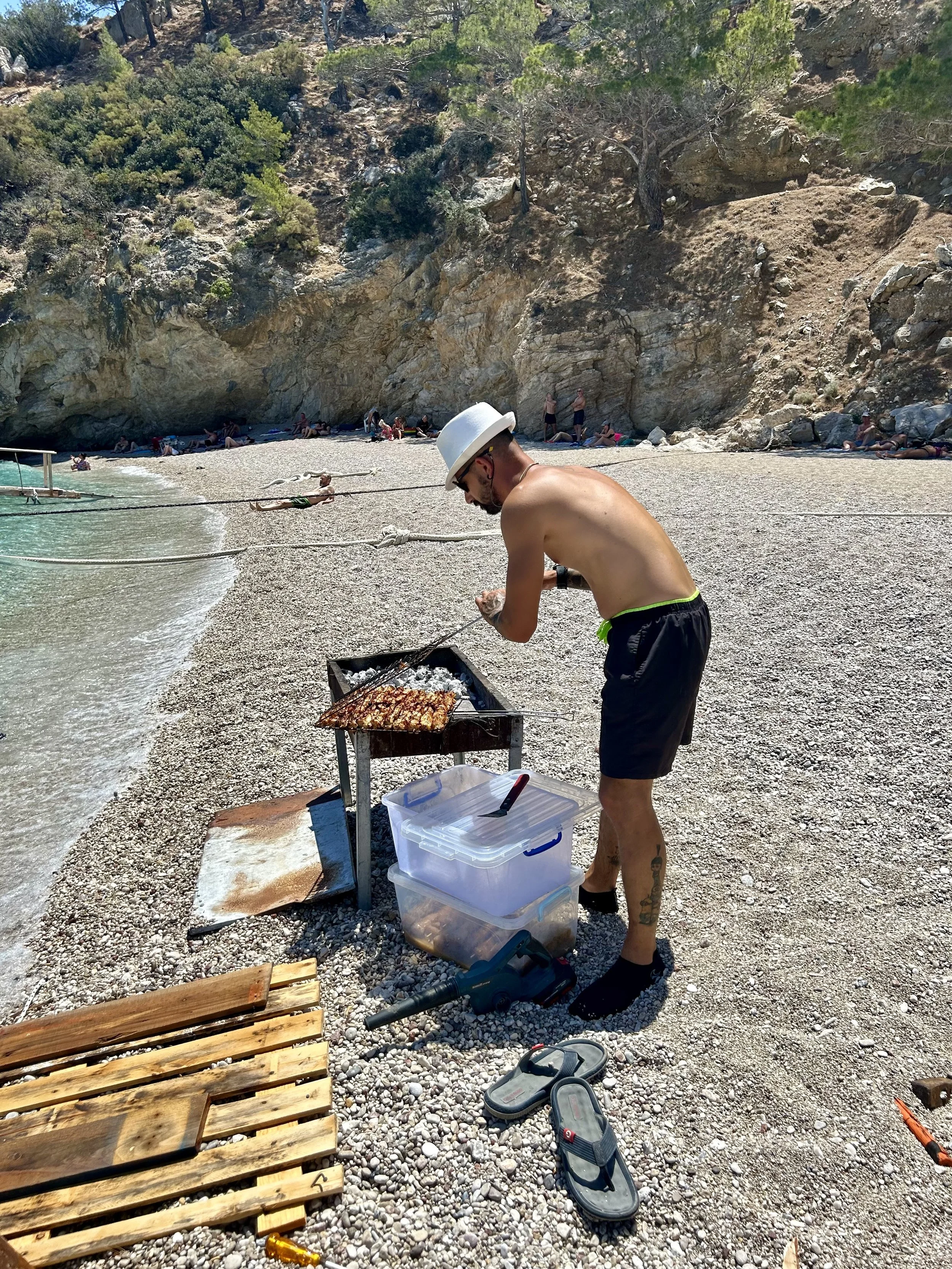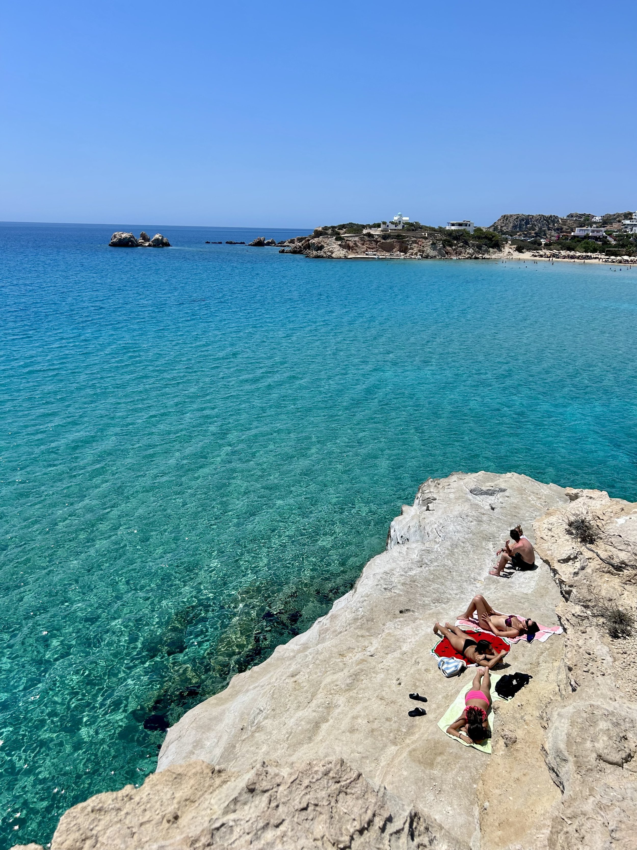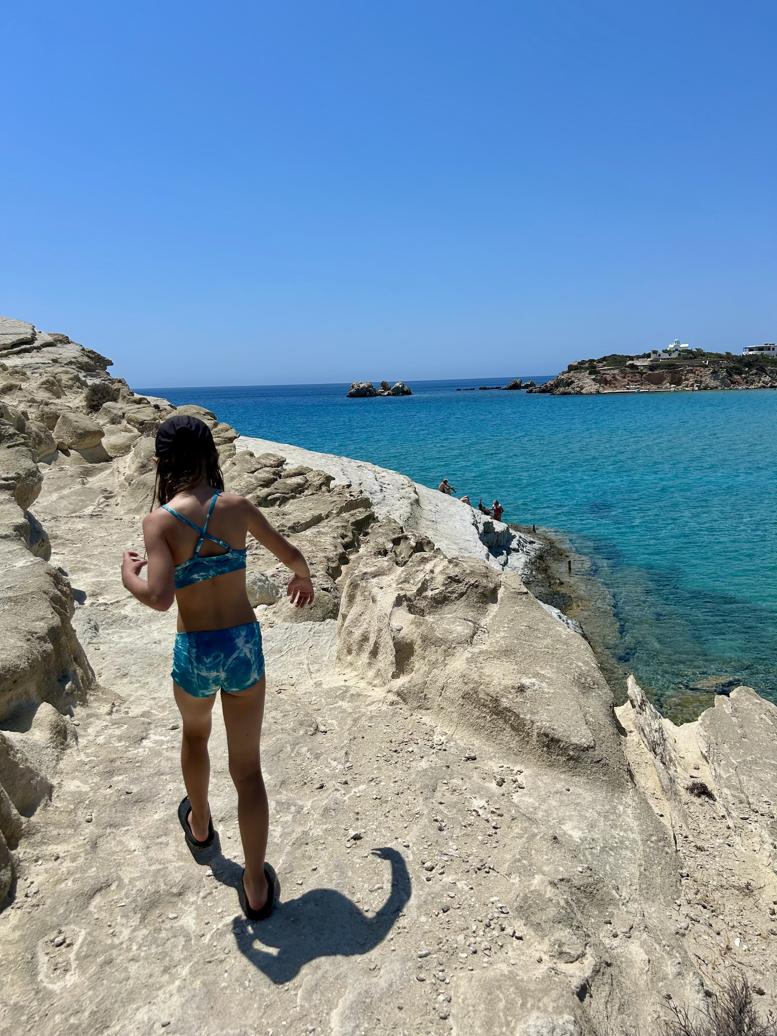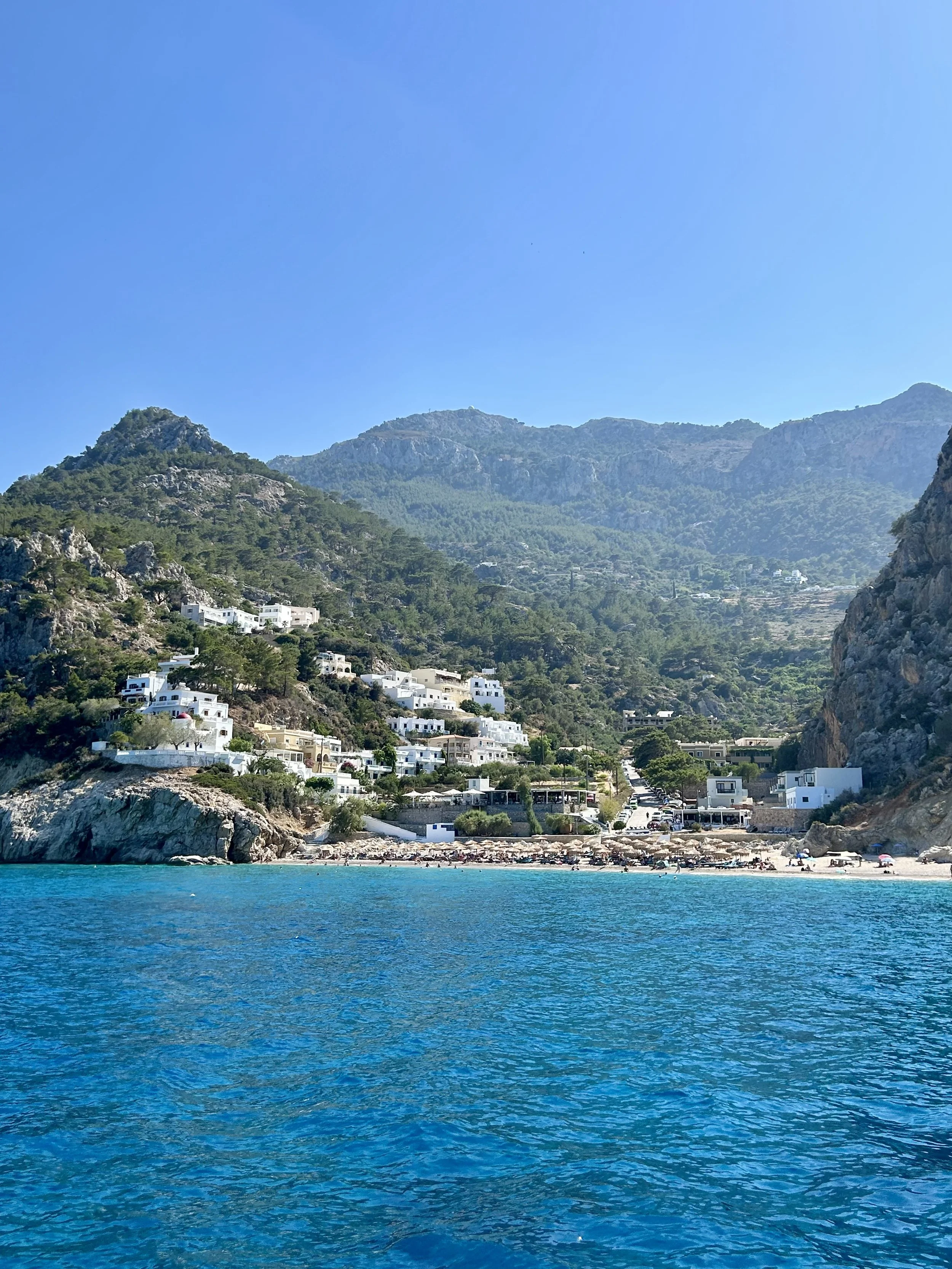 Apella Beach åkte vi båt till en dag och den är verkligen wow. Den klassas som en av Greklands finaste ständer, har en magisk inramning och vattnet är knallturkost. Här är det småsten och badskor är bra att ha. Under vår båttur besökte vi tre olika stränder med båt och det ingick lunch (grillad kyckling på stranden). Vi bokade denna utflykt via hotellet där det fanns reklam för massor av olika båtturer.