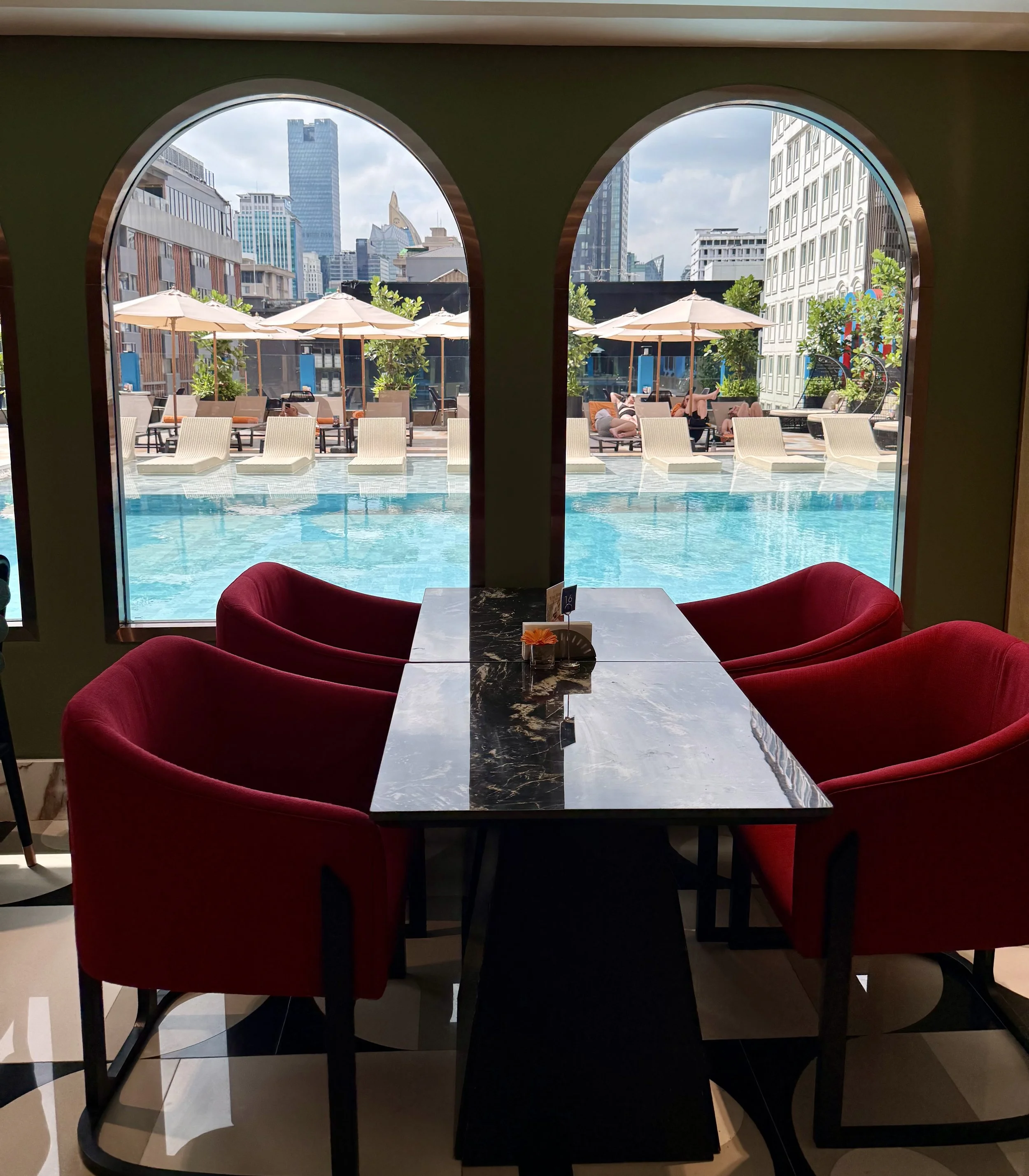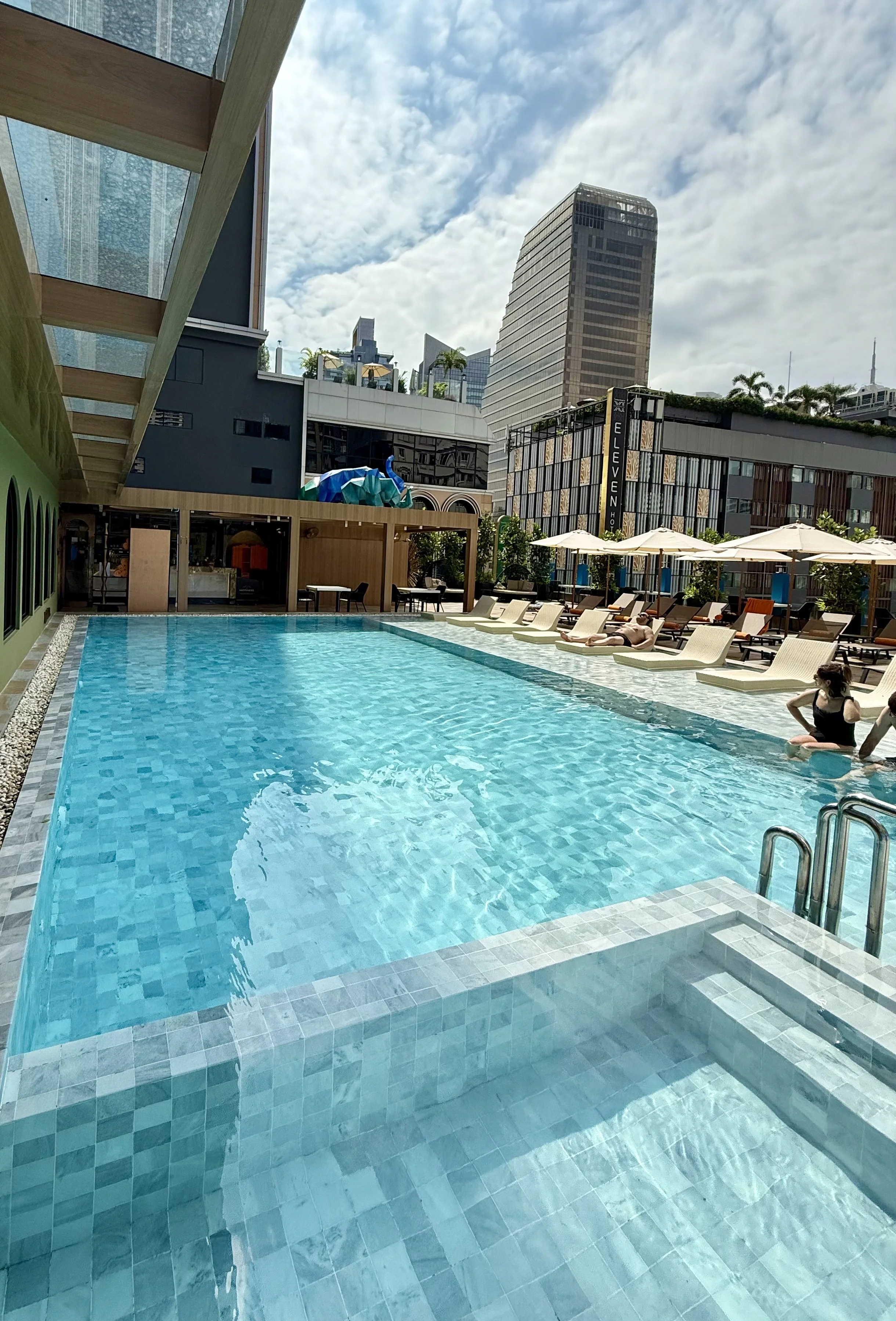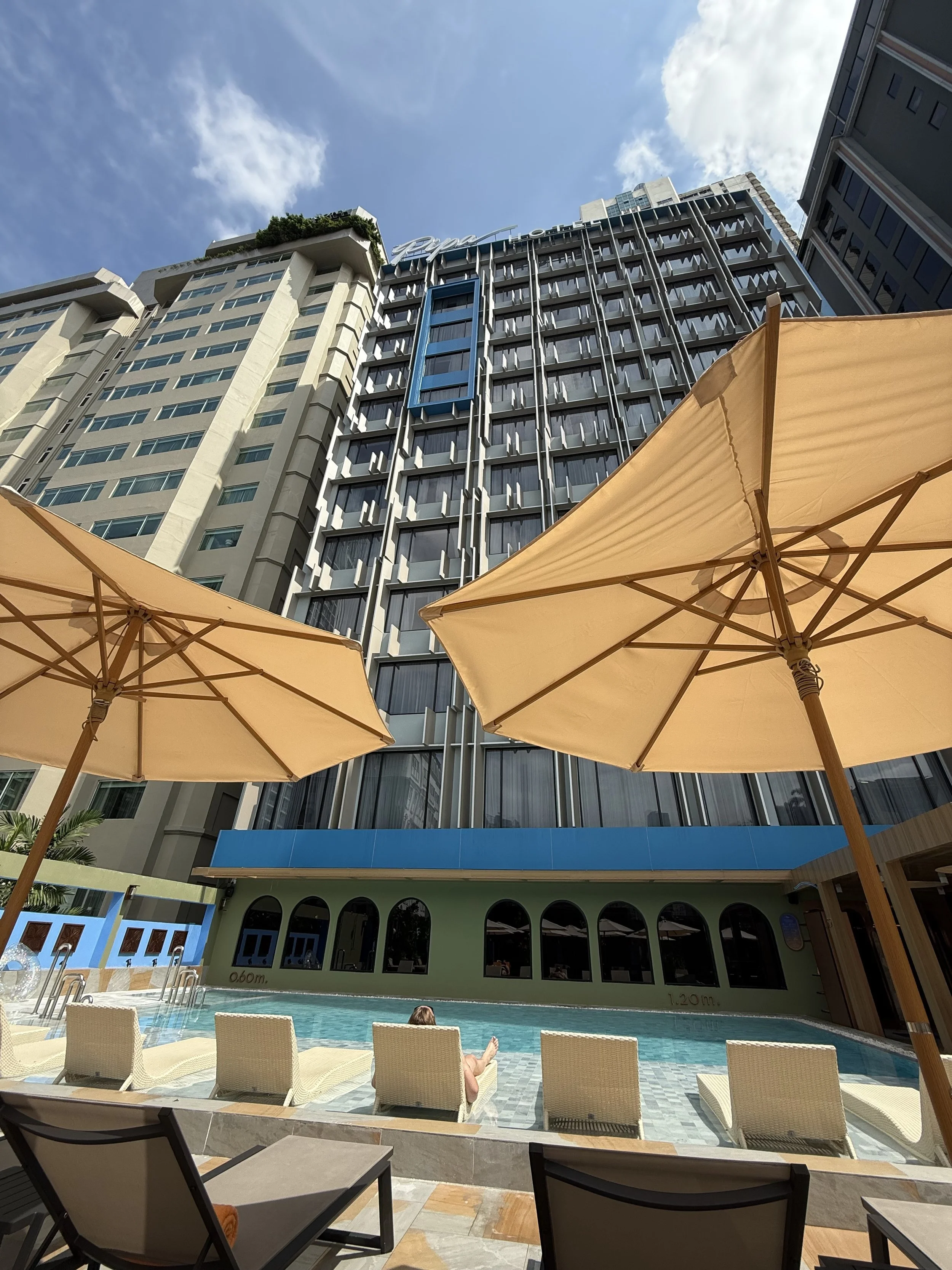 Poolen ligger på våning 5 och det gör även gymmet och restaurangen. Poolen har bra storlek, det var aldrig fullt när jag var där och det finns bra med solstolar. Dessutom mycket sol vid poolen vilket är ett plus! När jag var där grillade hotellet mini-hamburgare varje eftermiddag vid poolen som alla gäster vid poolen fick frossa i helt gratis.