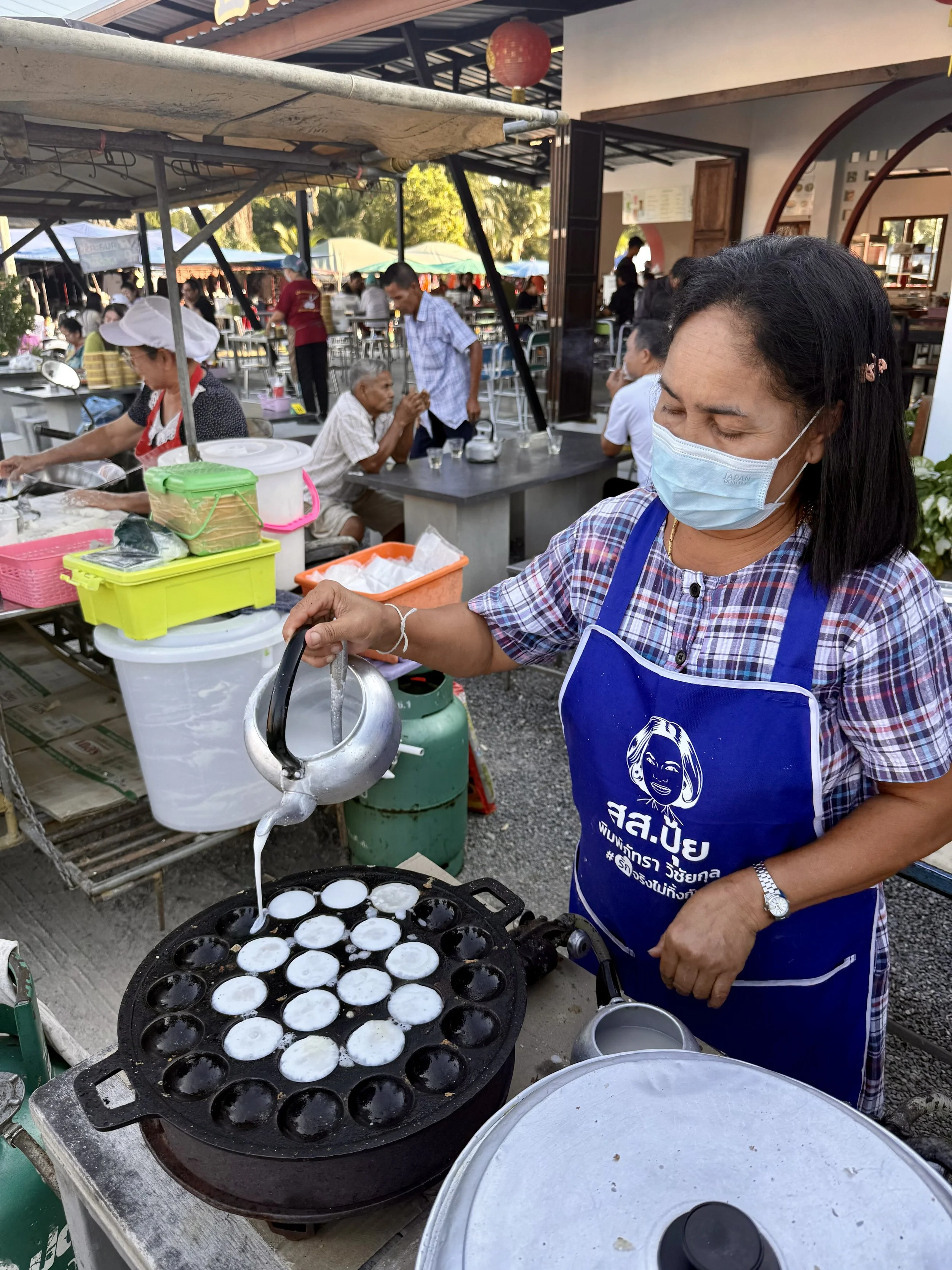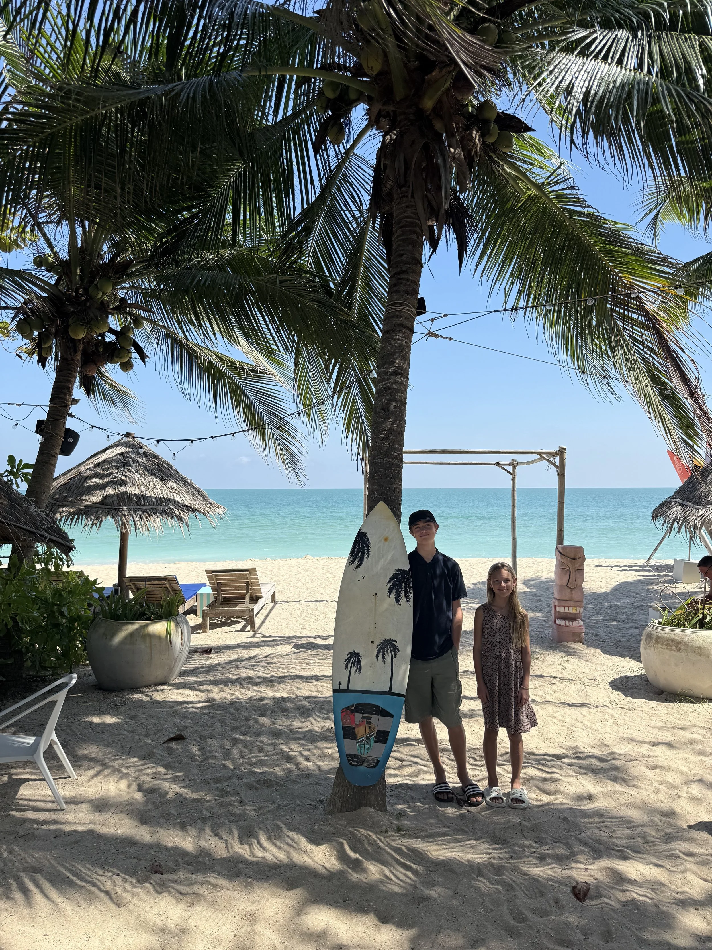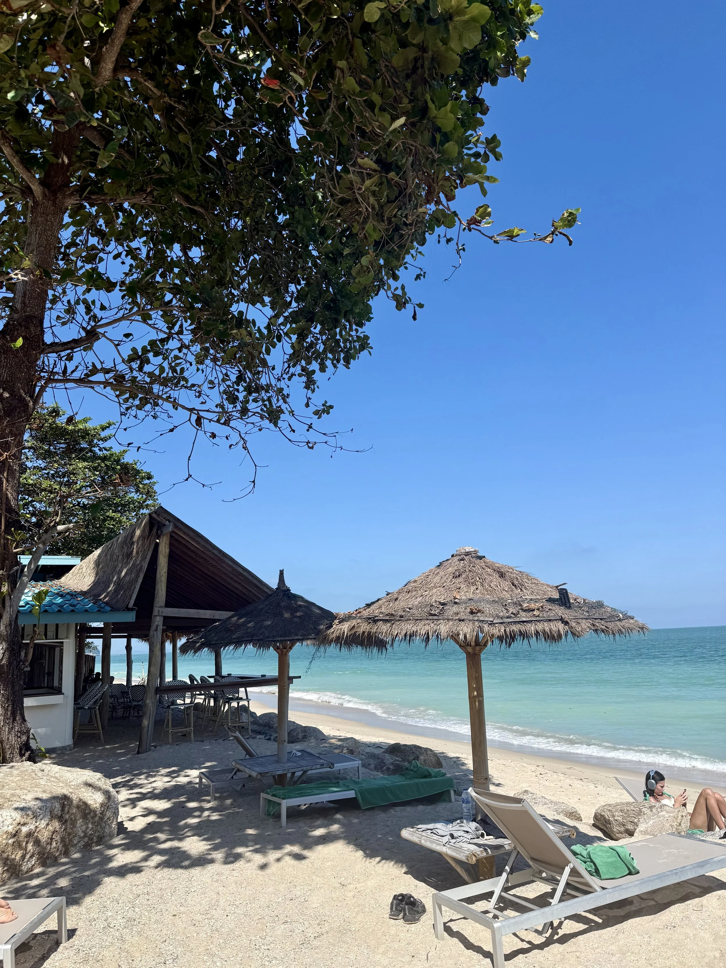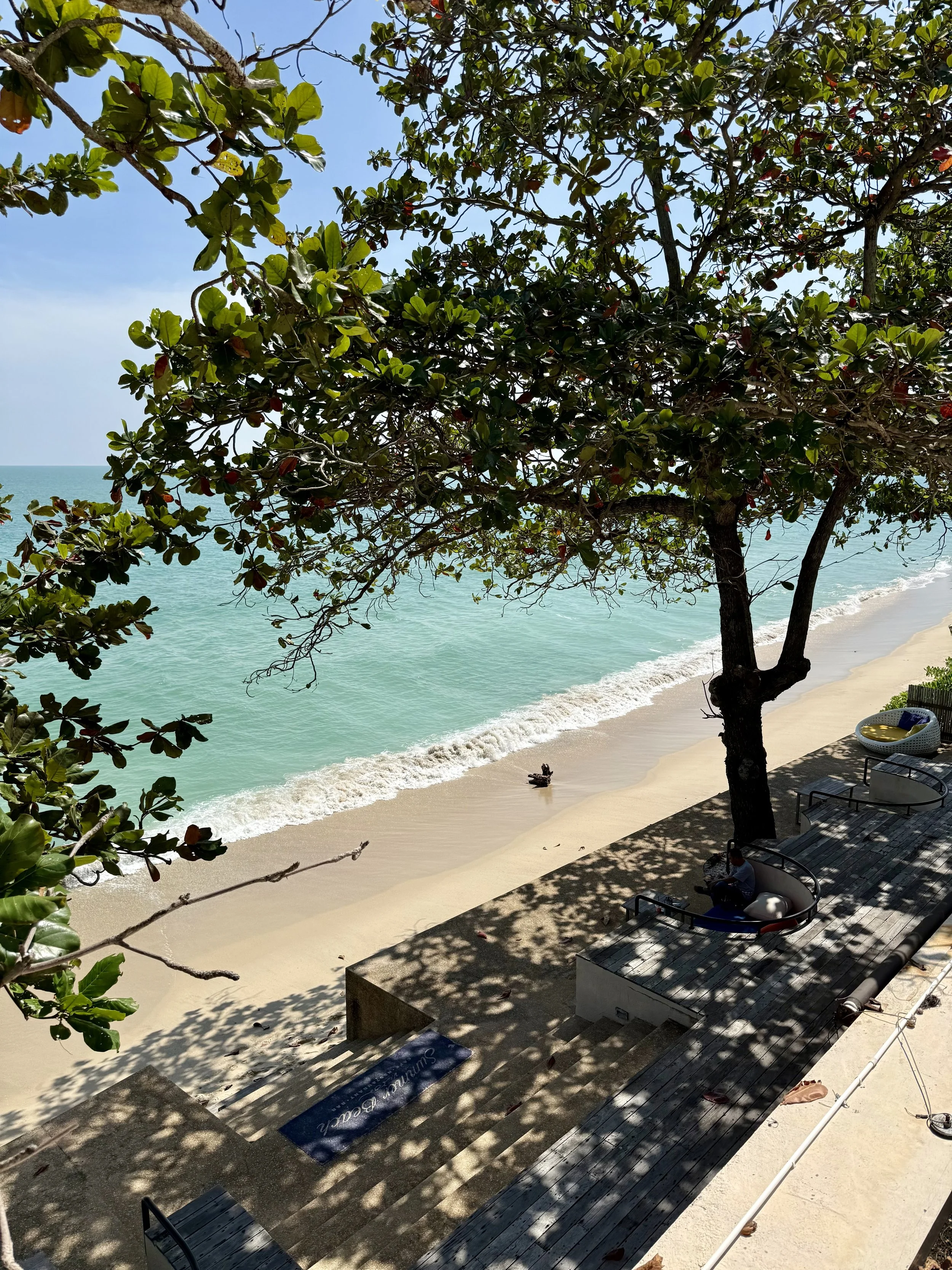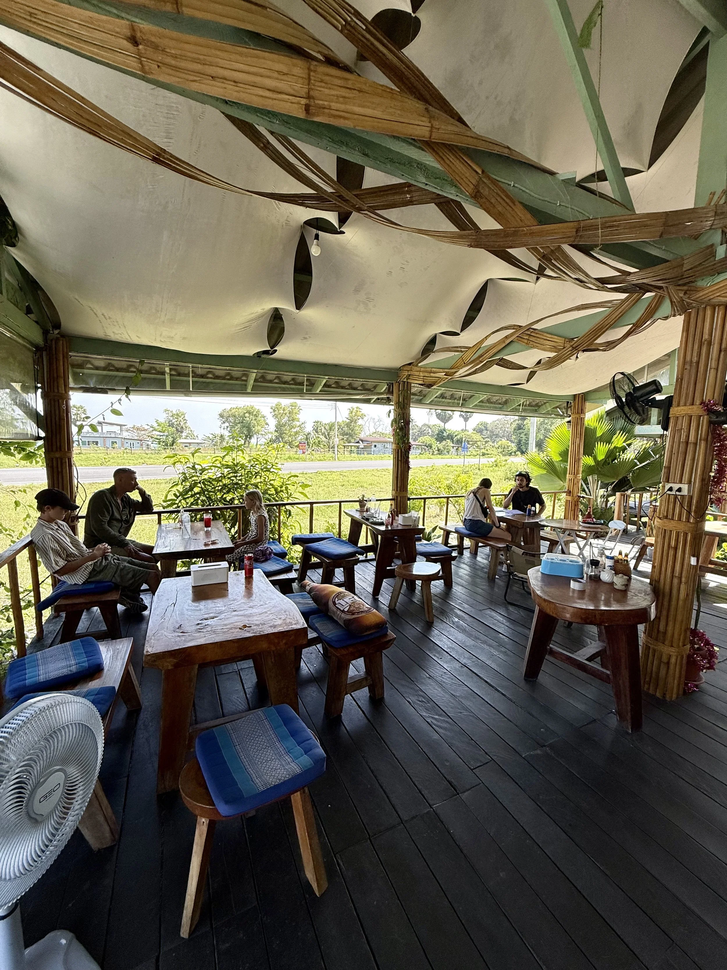 Vi flög från Bangkok till Nakhon Si Thammarat, vilket är den närmaste flygplatsen till Khanom. Flygresan är smidig och tar ungefär en timme, och därifrån fortsatte vi med taxi i cirka 1,5 timme längs kusten. Resan i sig är väldigt fin, med otroligt mycket plamer och små byar längs vägen.