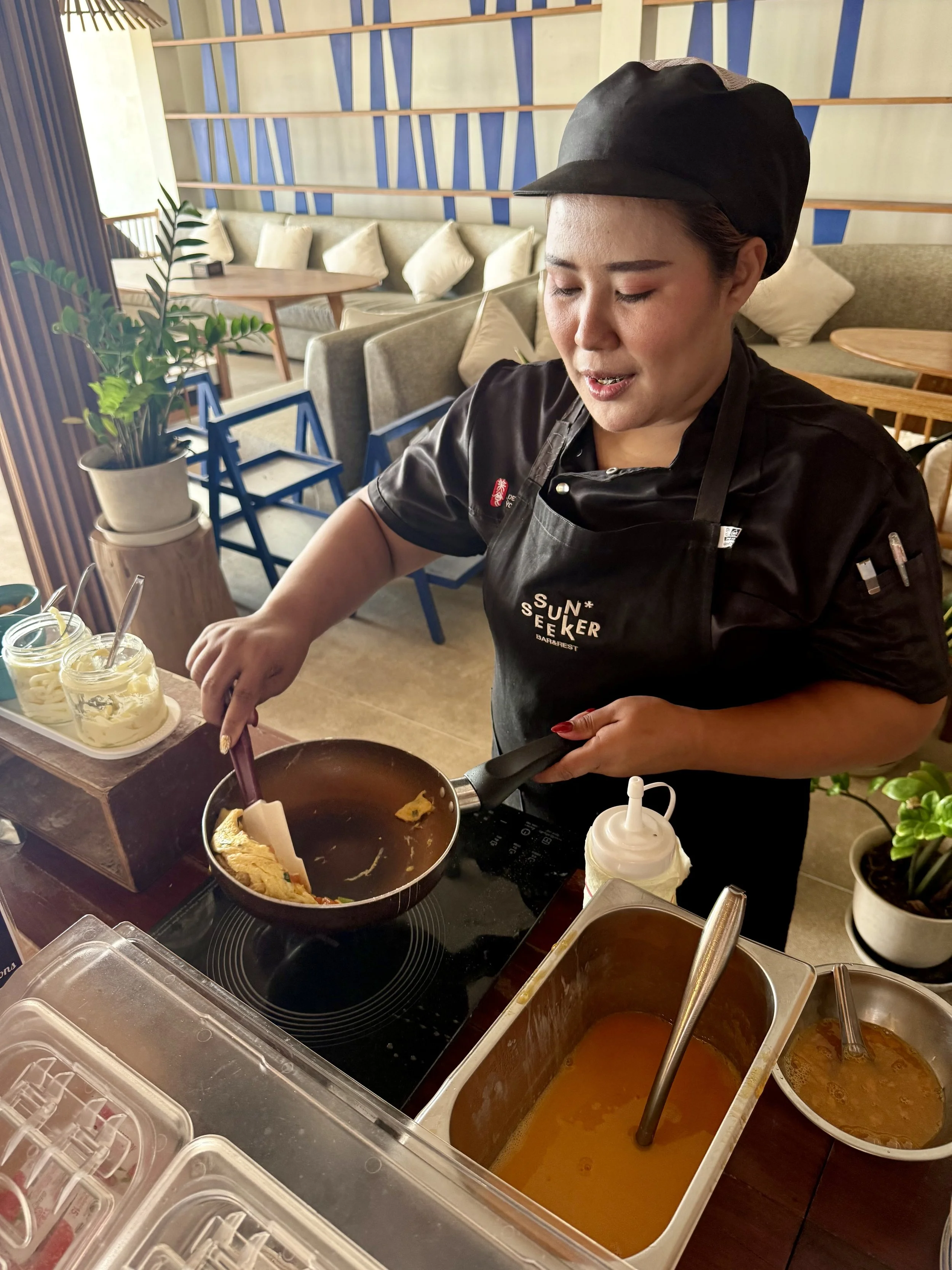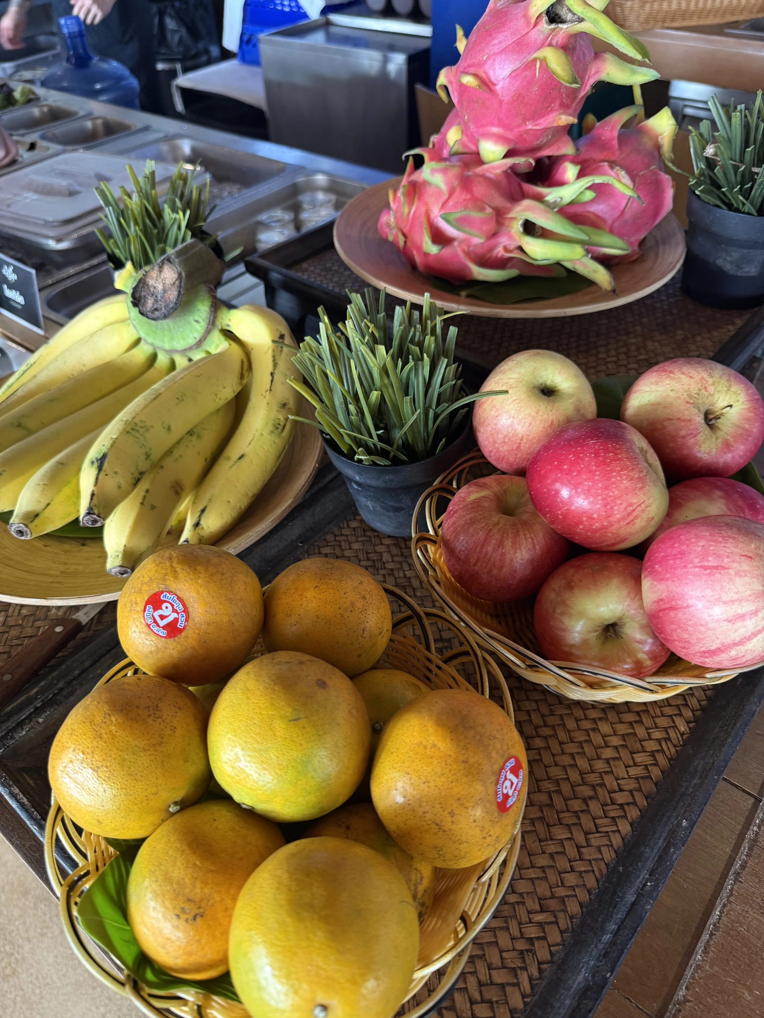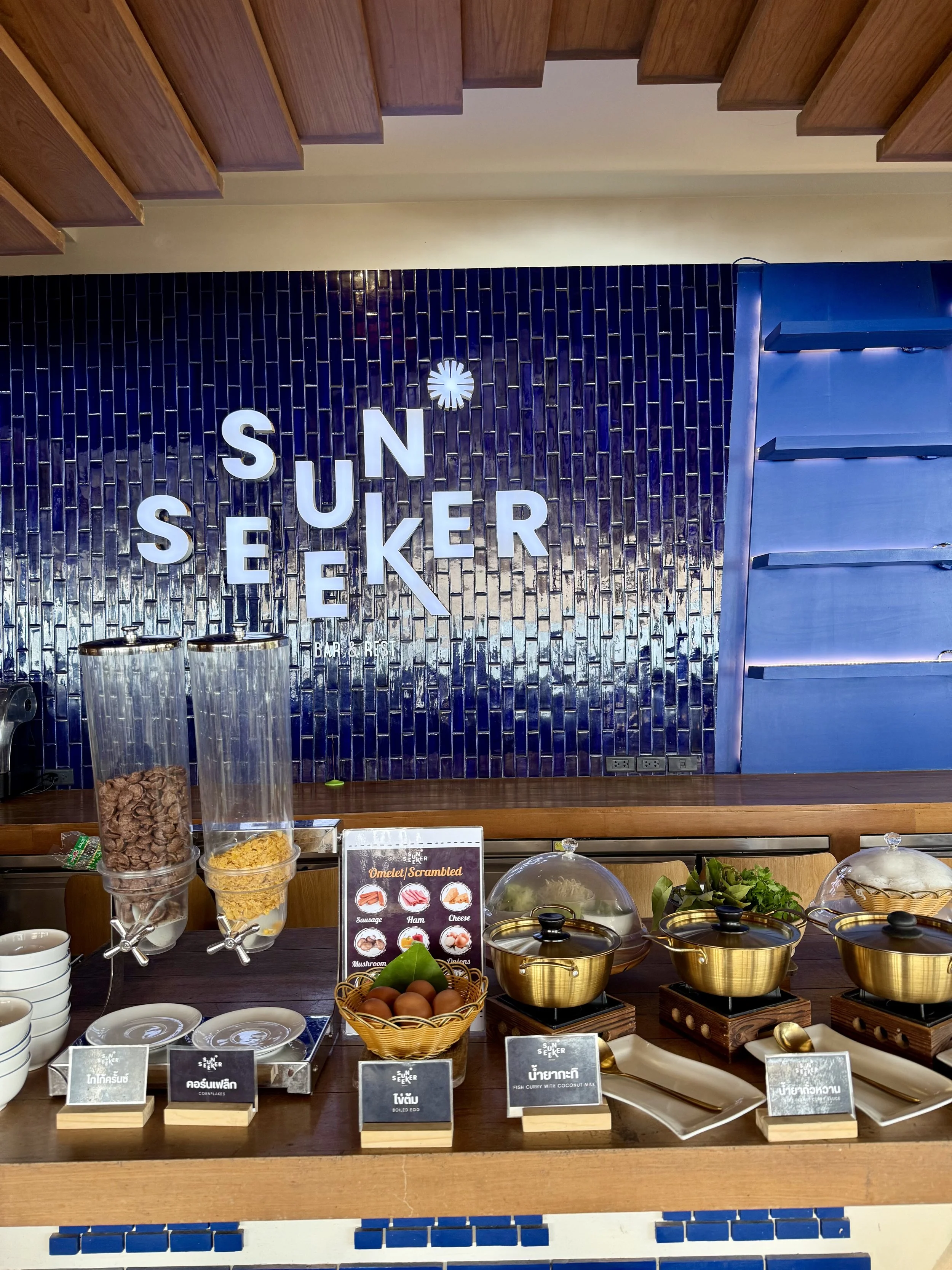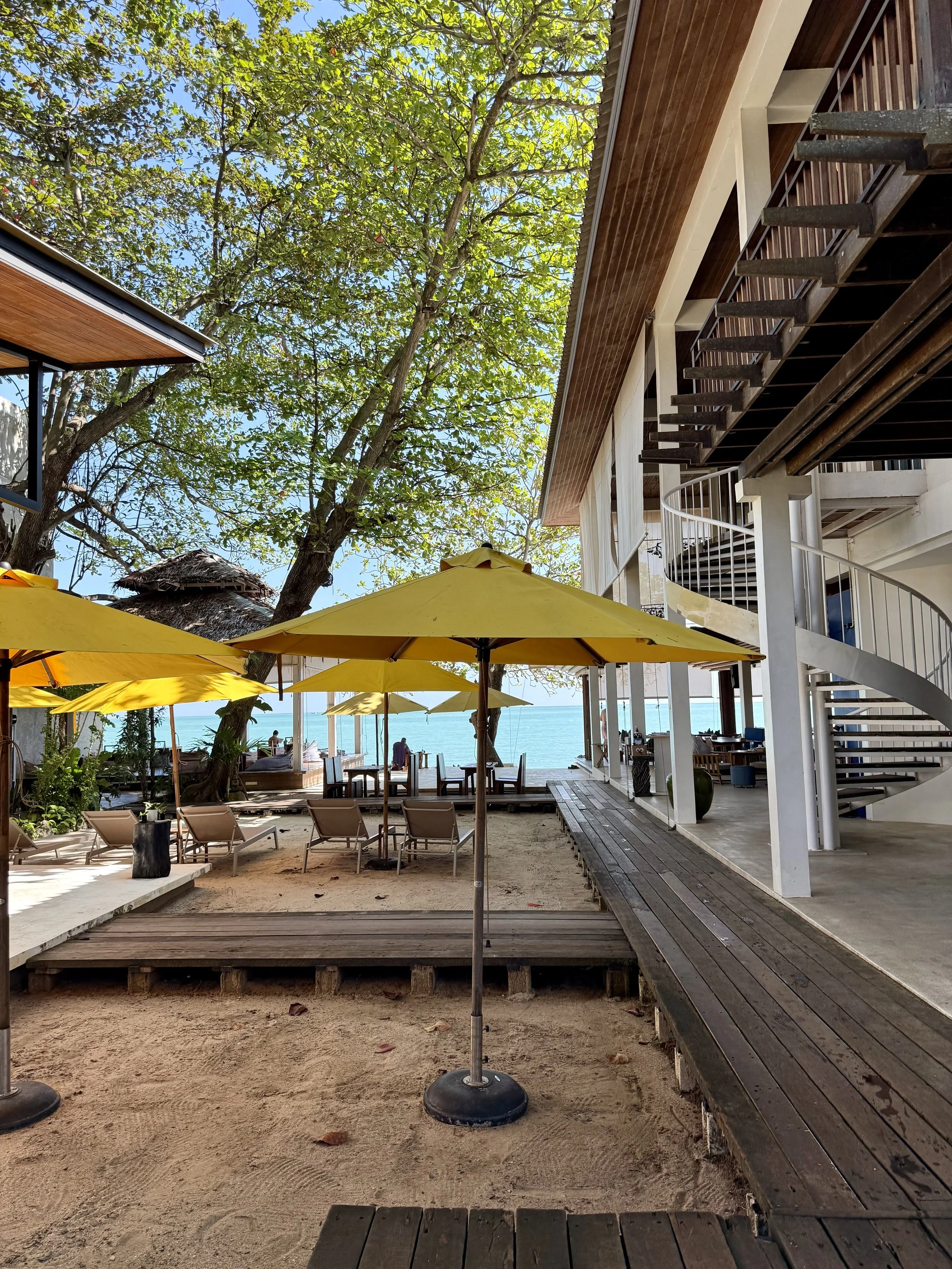 Vi åt i stort sett alla våra måltider på hotellet. Frukost ingår i priset och här serveras lokala delikatesser från Sichon, i kombination med västerländsk mat, frukt och självklart finns också en personlig äggkock. Att sitta på denna terrass att äta känns helt overkligt och det är ett lugnt som för tankarna att du sitter i ditt eget beachhouse.