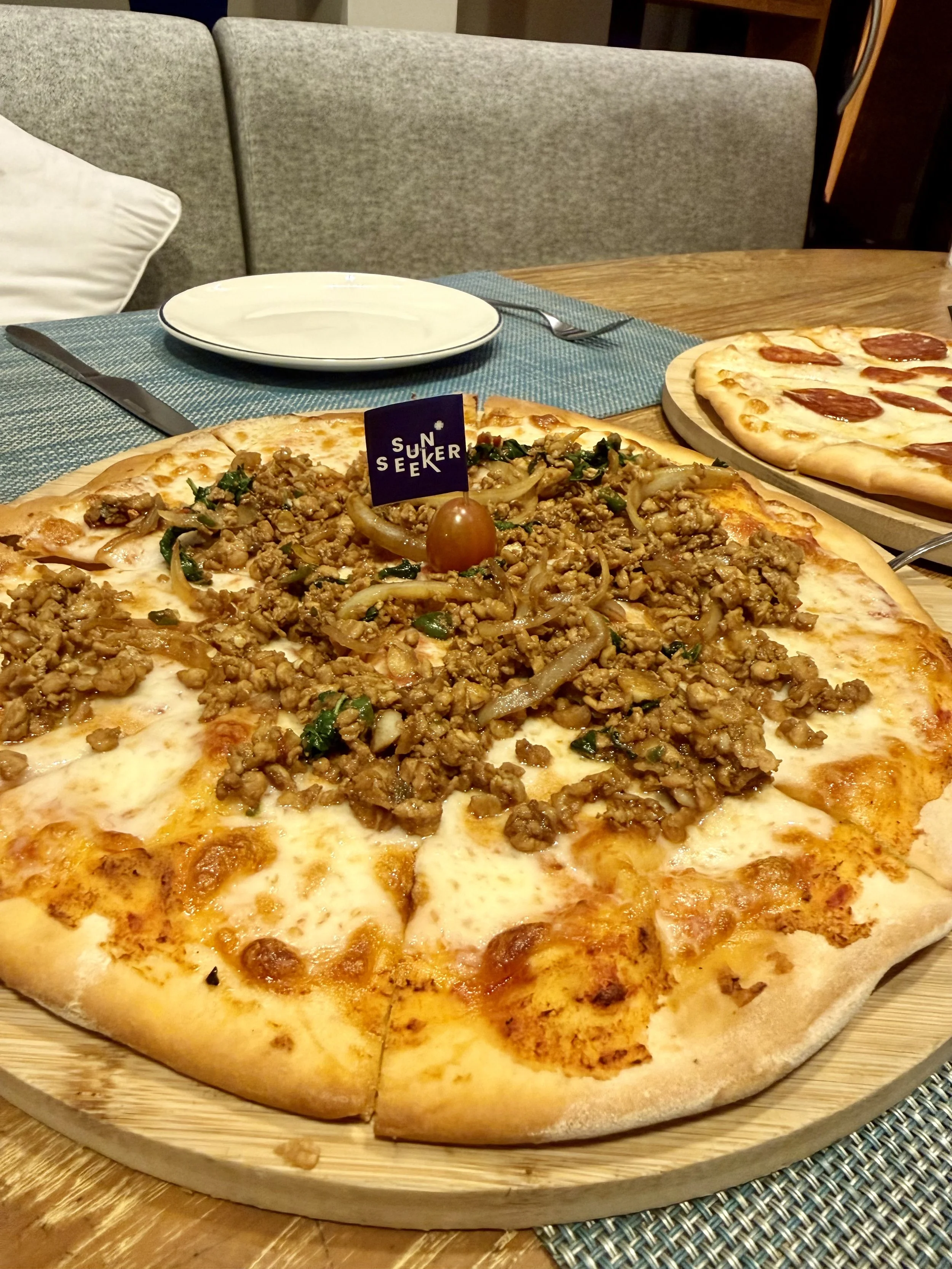 Hotellets restaurang heter Sunseeker och är absolut bäst på hela stranden. Deras chicken cashewnut är den bästa jag någonsin ätit och de gör också en fusion pizza med thaismaker som är gudomlig. Det finsn ett par till restauranger längs stranden men vi åt det mesta här då allt var jättegott, de serverar både lunch och middag. Dessutom gör de jättegoda drinkar, deras pina colada är top notch!