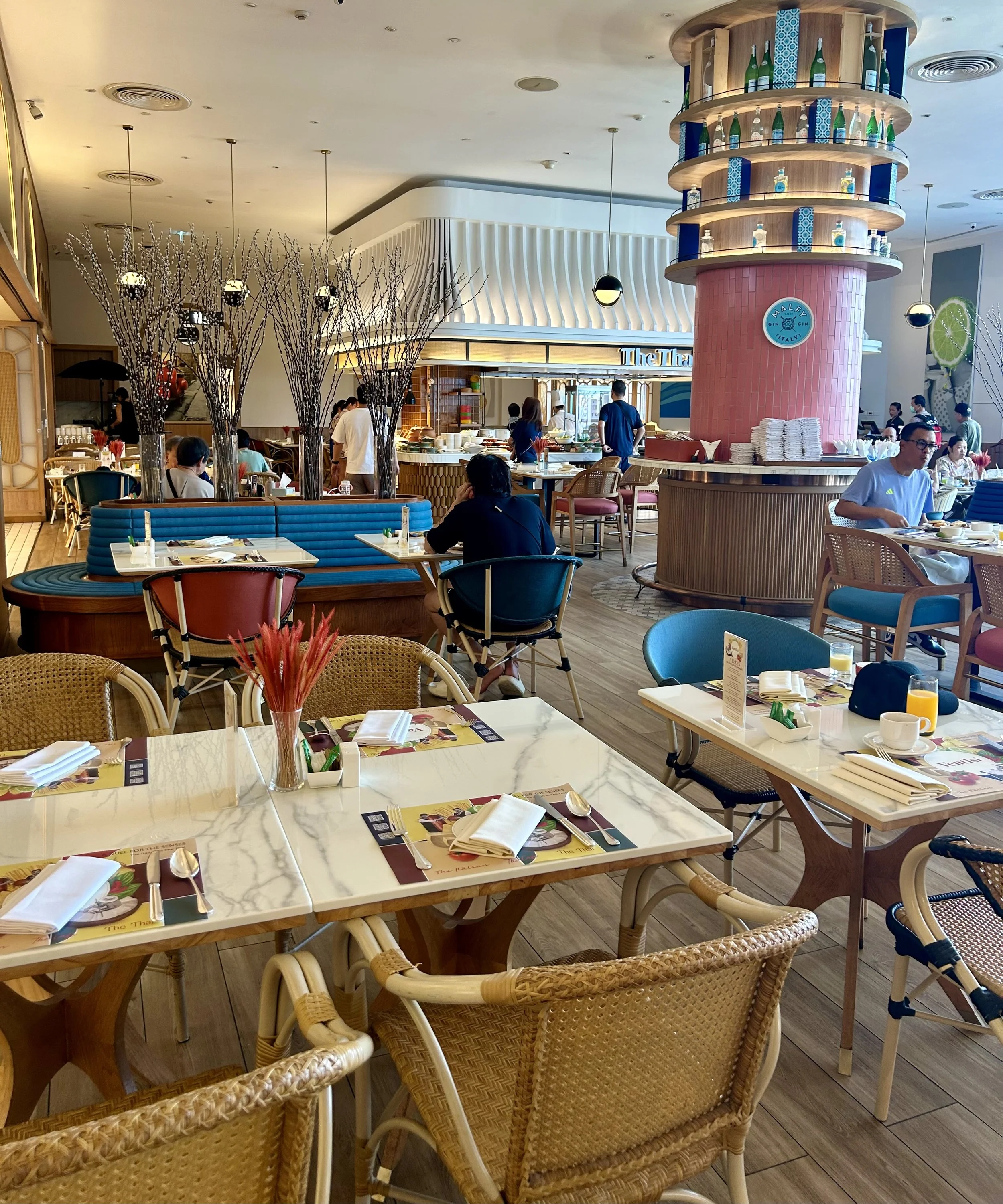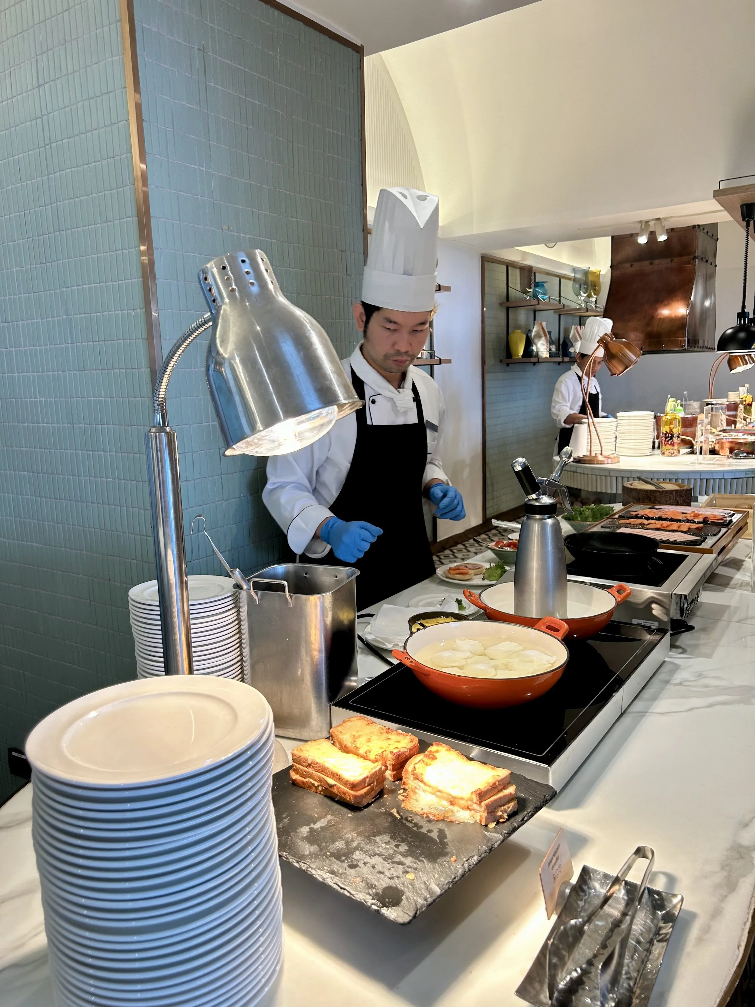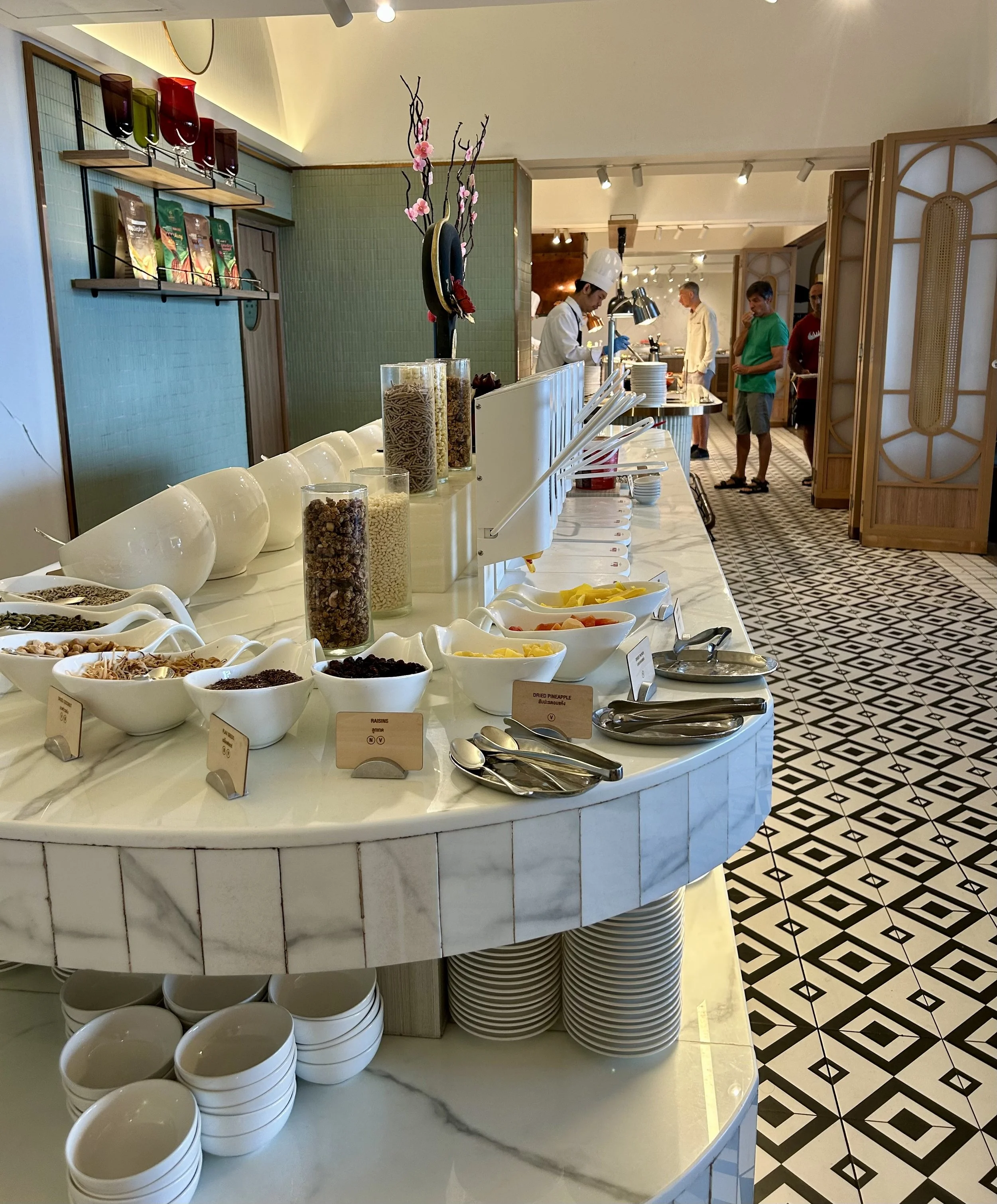 Frukosten här är otrolig! Mina barn var i himlen (och även vi vuxna). En kock steker omeletter och ägg och gör magiska egg benedicts. Det finns liksom allt här. Smoothies, frukt, yoghurt, bacon, nudlar, sushi, pannkakor, våfflor och ja ni fattar! Dessutom har man en himla härlig utsikt!
