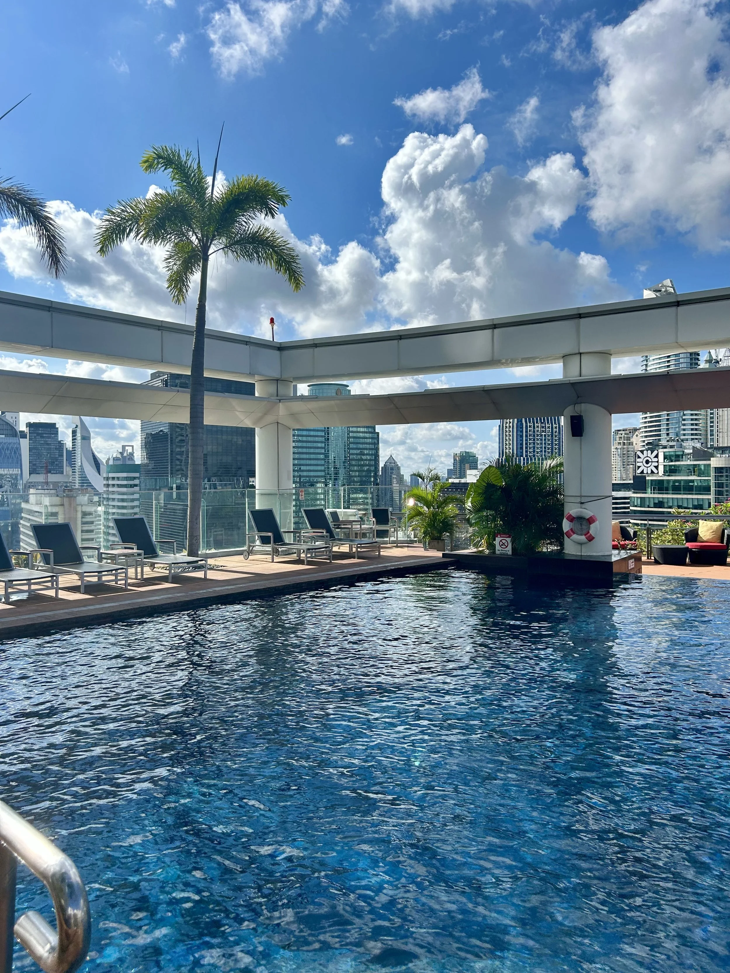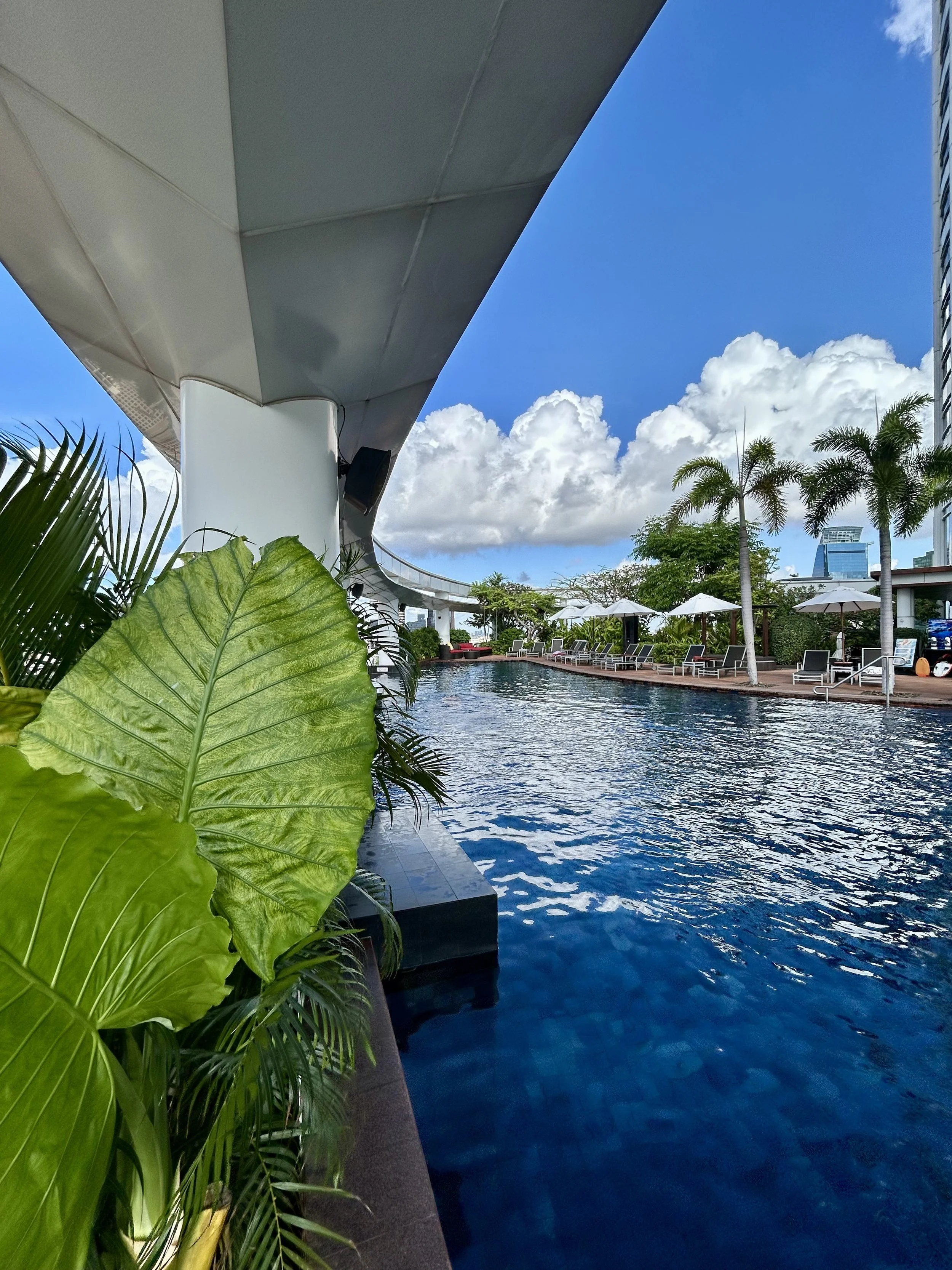 Poolen ligger på våning 26 och är stor nog att simma längder i. Den är härligt inramad med solstolar, palmer och parasoller. Här finns också en grön oas med bänkar, stolar och bar. Hotellet har gym och tennisbana.