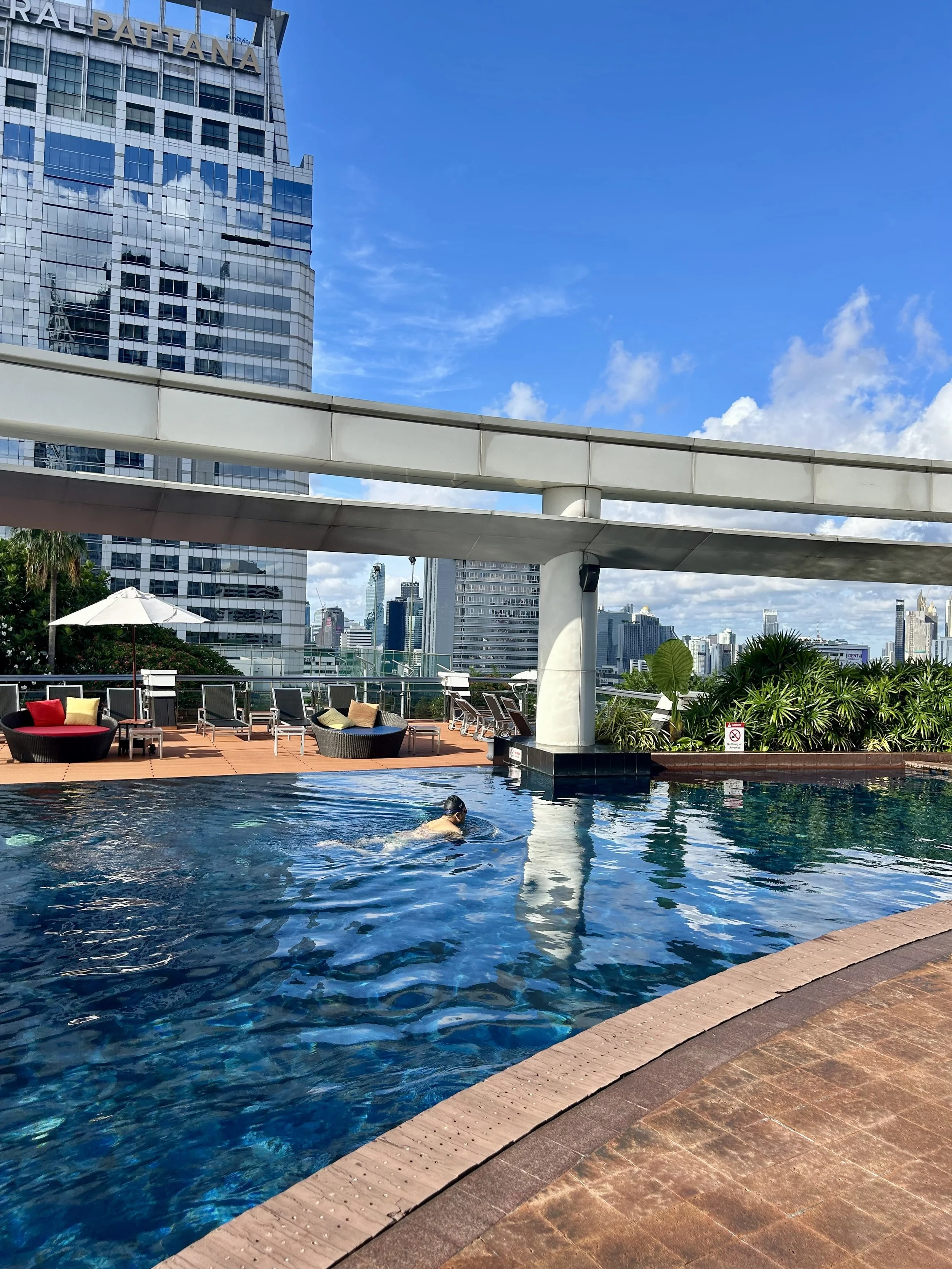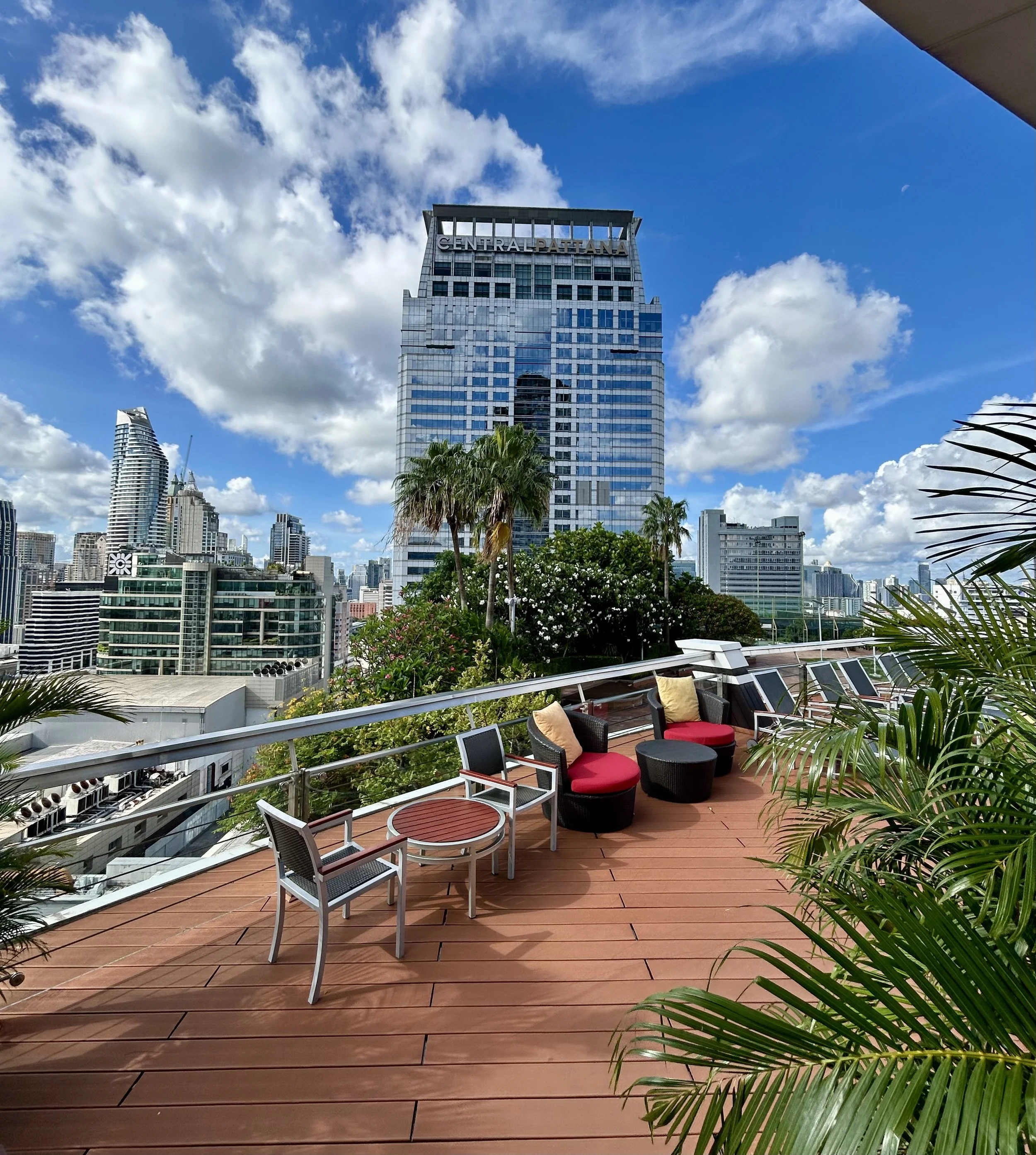 Hotellet ligger ovanpå ett av Bangkoks största varuhus Central World och det är helt oslagbart när du reser med barn. Du har butiker, restauranger, bowling, bio och matbutik genom att bara ta hissen ned.