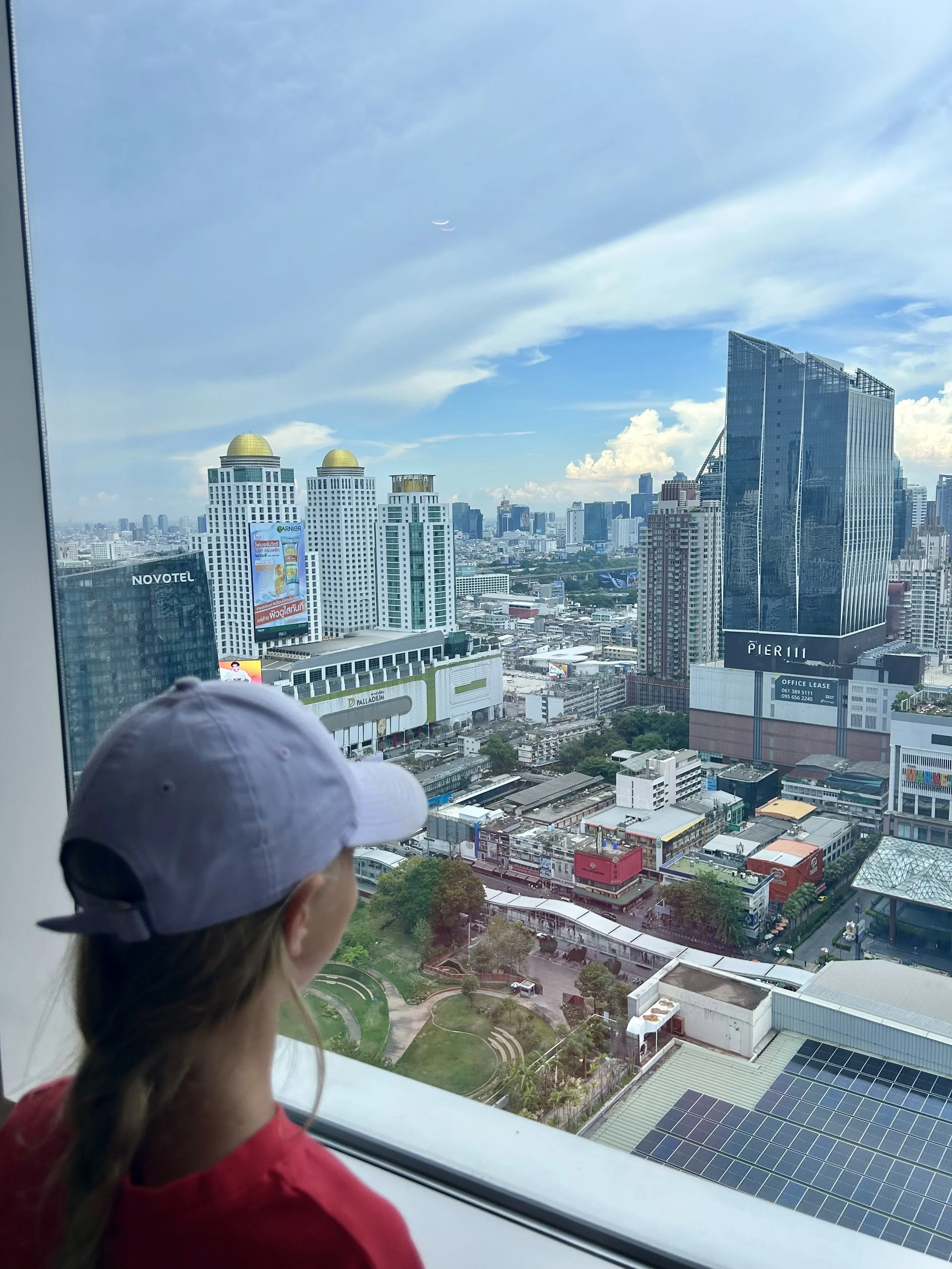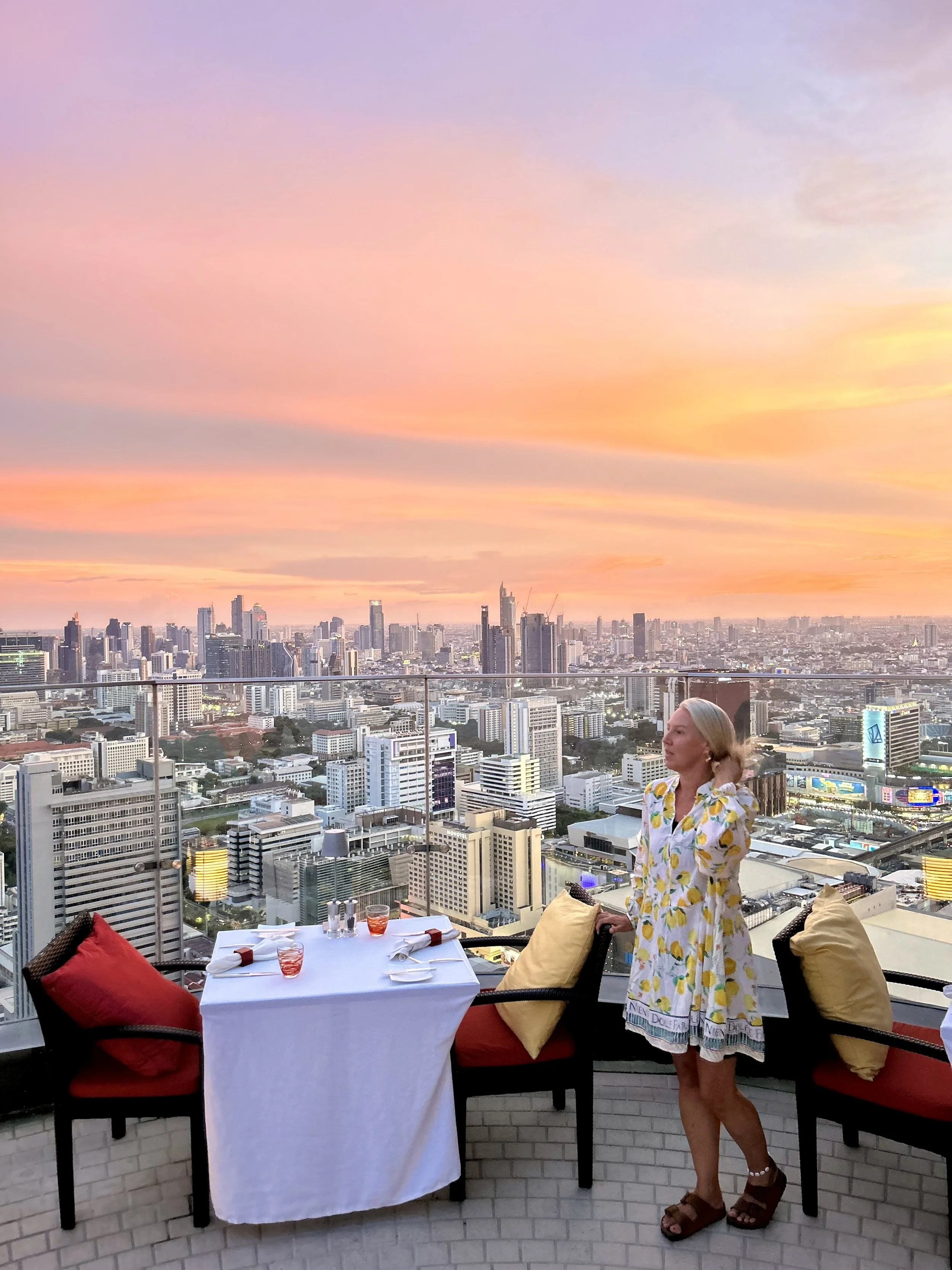 Högst upp på våning 55 ligger en av mina favorit-takbarer i Bangkok Red Sky där också barn är välkomna.